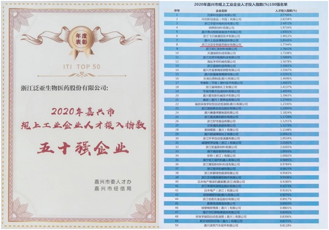 | 泛亞醫藥從強手林立的規上工業企業中脫穎而出,以1.7744%的人才投入指數表現,首次進入嘉興市“五十強”行列,躋身前八。 |