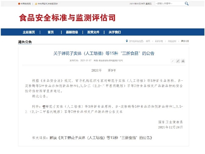 | 泛亞醫藥研發的蟬花被國家衛健委批準為新食品原料 | |